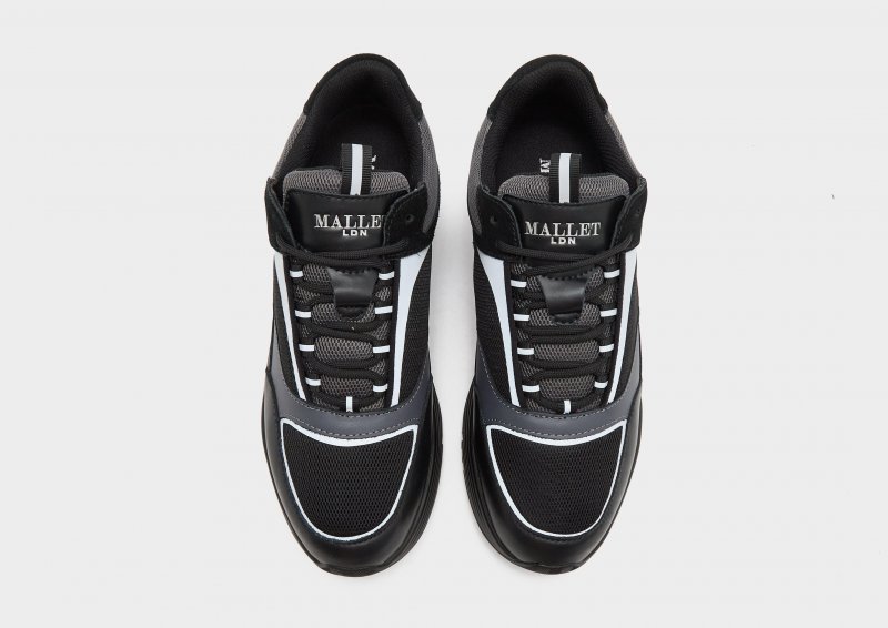Bringen Sie Ihren Alltagsstil mit diesen Cyrus-Sneakern für Herren von Mallet auf ein neues Level. In Schwarz und Dunkelgrau sind diese Sneaker aus leichtem, atmungsaktivem Mesh mit strapazierfähigen Lederüberzügen gefertigt. Sie verfügen über einen Schnürverschluss für sicheren Halt, einen gepolsterten Schaft für zusätzlichen Halt und eine Schlaufe für einfachen Einstieg. Unter dem Fuß sitzen sie auf einer weichen Schaumstoff-Zwischensohle für ein sanftes Laufgefühl, während die griffige Gummilaufsohle festen Halt bietet. Abgerundet wird das Design durch das charakteristische Mallet-Branding.