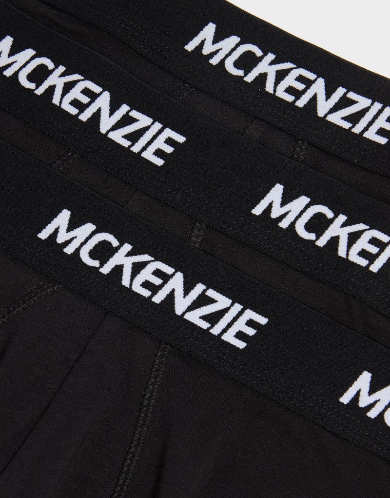 Frischen Sie Ihre Alltagskleidung mit diesem 3er-Pack Wyatt-Boxershorts für Herren von McKenzie auf. Diese Slim-Fit-Boxershorts in Schwarz sind aus weichem, dehnbarem Baumwollstoff für dauerhaften Tragekomfort gefertigt. Sie haben einen gewebten elastischen Bund für ein sicheres Tragegefühl und sind jeweils mit dem wiederholten McKenzie-Branding versehen. Maschinenwaschbar. Bitte beachten: Aus hygienischen Gründen kann Unterwäsche nicht zurückgegeben werden.