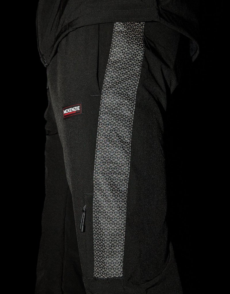 Zeit für neuen Streetstyle mit der McKenzie Axton Woven Trainingshose für Herren. Diese schwarze Hose ist aus recyceltem Polyestergewebe gefertigt, um absoluten Komfort zu gewährleisten. Sie verfügt über einen elastischen Bund für ein entspantes Tragegefühl, offene Seitentaschen und eine Oberschenkeltasche mit Reißverschluss. Abgerundet wird das Design durch das klassische McKenzie-Logo auf dem Oberschenkel. Waschmaschinengeeignet. Unser Model ist 1,88 m groß und trägt Größe M.