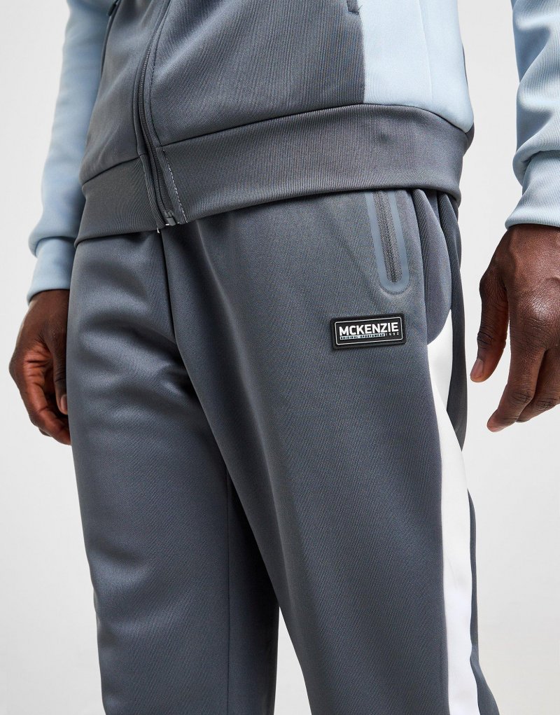 Mit der Base Poly Herren-Trainingshose von McKenzie bringst du JD-exklusiven Style in deine Garderobe. Diese schmal zulaufende Hose in Grau besteht aus glattem, dehnbarem Polyknit und bietet maximalen Tragekomfort. Außerdem besitzt sie einen verstellbaren Bund mit Kordelzug für individuellen Komfort und Reißverschlusstaschen für deine wichtigsten Dinge. Abgerundet wird das Design durch einen mehrfarbigen Schriftzug an der Seite und das klassische McKenzie-Logo auf dem linken Hosenbein. Waschmaschinengeeignet. Unser Model ist 1,80 m groß und trägt Größe M.