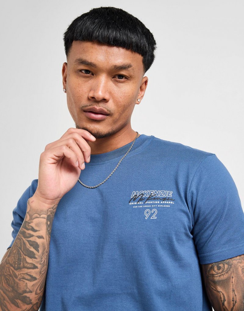 Exklusiv bei JD: Schnapp dir das McKenzie Decimus T-Shirt für Herren. Dieses Standard-Fit Oberteil in Blau besteht aus weicher, leichter Baumwolle und sorgt für absoluten Tragekomfort. Es verfügt über einen gerippten Rundhalsausschnitt und kurze Ärmel für ein angenehmes Tragegefühl, während ein kontrastierendes McKenzie-Motiv auf der Rückseite und ein verkleinertes Logo auf der Brust das Design abrunden. Waschmaschinengeeignet. Unser Model ist 1,83 m groß, hat einen Brustumfang von 102 cm und trägt Größe M.