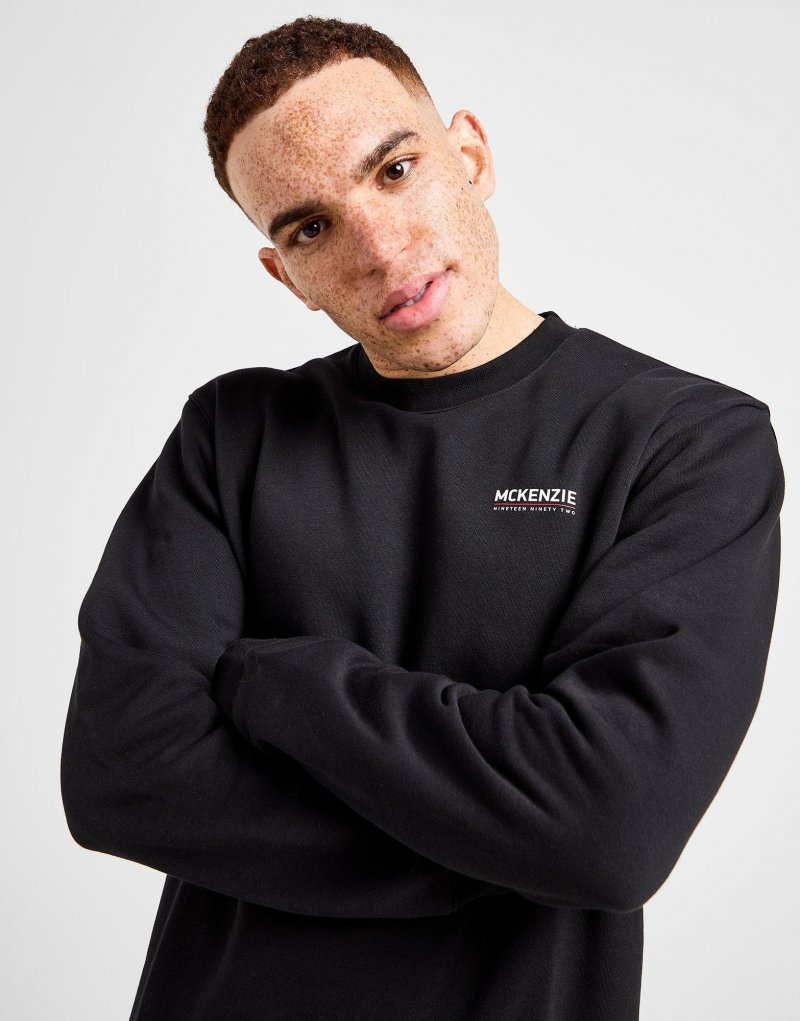 Sichere dir hochwertige Basics mit dem McKenzie Essential Crew Sweatshirt für Herren. Dieses JD-exklusive Sweatshirt in Schwarz besteht aus einer weichen Mischung aus Baumwolle und recyceltem Polyfleece, um dir maximalen Komfort in Alltag zu bieten. Es verfügt über einen gerippten Rundhalsausschnitt und lange Ärmel für einen klassischen Look, während dehnbare, gerippte Bündchen die Passform optimieren. Abgerundet wird das Design durch das klassische Logo von McKenzie auf der Brust. Waschmaschinengeeignet. Unser Model ist 1,83 m groß und trägt Größe M.
