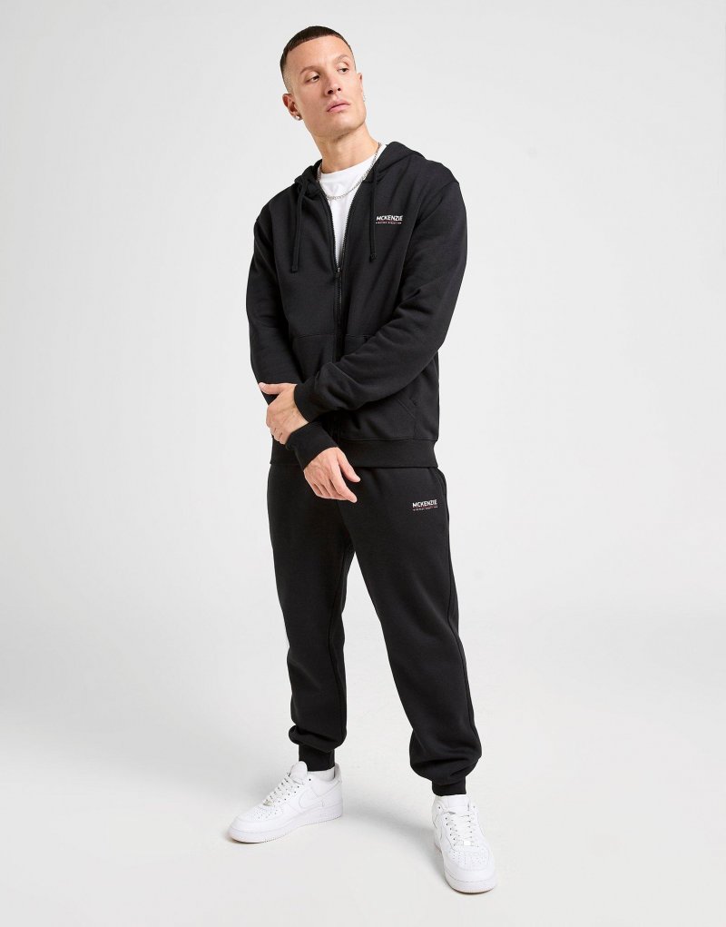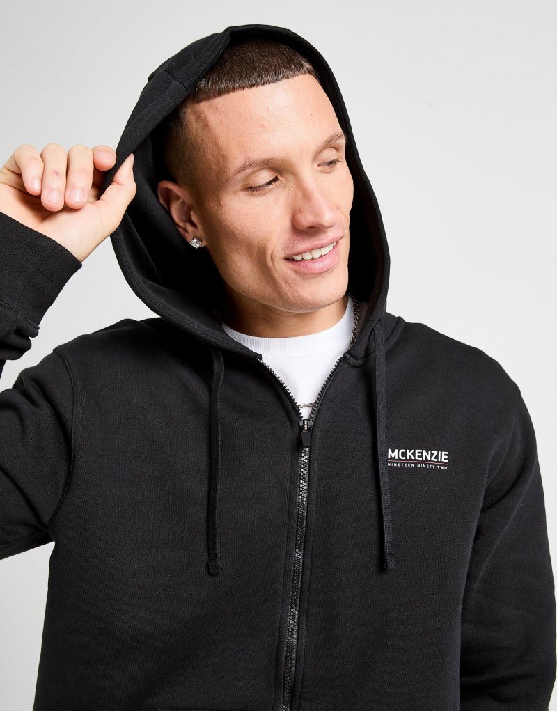 Veredeln Sie Ihren Streetstyle mit diesem Essential Full Zip Hooded Tracksuit für Herren von McKenzie. Dieser JD-exklusive Trainingsanzug in Schwarz besteht aus weichem Fleece, das teilweise aus recyceltem Polyester besteht. Er verfügt über einen durchgehenden Reißverschluss und eine verstellbare Kapuze für individuellen Schutz. Die passende Jogginghose hat einen elastischen Bund für entspanntes Tragen. Er verfügt über durchgehende Taschen und ist mit dem charakteristischen McKenzie-Branding versehen. Maschinenwaschbar. Unser Model ist 1,83 m groß, hat einen Brustumfang von 99 cm und trägt Größe M.