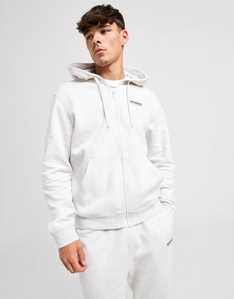 Bringen Sie frischen Wind in Ihre Alltagsgarderobe mit diesem Essential Full Zip Hooded Tracksuit von McKenzie. Dieses JD-exklusive Set in Graumeliert besteht aus einem weichen Mischgewebe aus Baumwolle und recyceltem Polyester für langanhaltenden Tragekomfort. Der Hoodie hat einen durchgehenden Reißverschluss und eine mit Kordelzug verstellbare Kapuze für individuellen Schutz. Rippbündchen halten die Form. Die passende Jogginghose hat einen elastischen Bund und Bündchen an den Beinen für einen sicheren Sitz. Die Taschen bieten Stauraum und tragen das charakteristische McKenzie-Logo. Maschinenwaschbar. | Unser Model ist 1,88 m groß, hat einen Brustumfang von 94 cm und trägt Größe M.