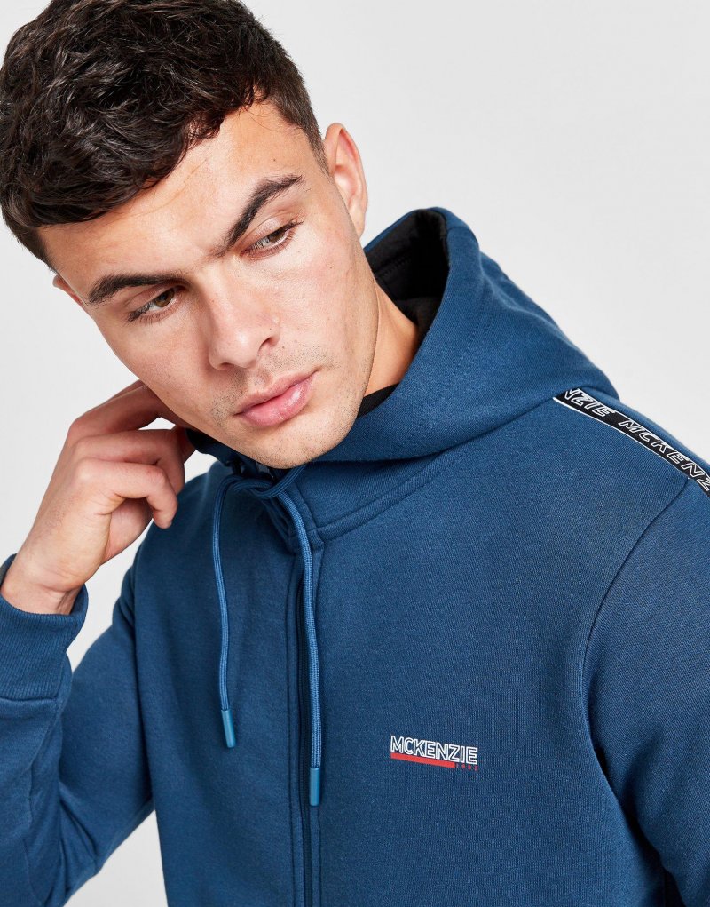 Lehn dich entspannt zurück mit diesem Essential Tape Herren-Hoodie von McKenzie. Dieser JD-exklusive Hoodie in Blau ist aus weichem Fleecestoff gefertigt und sorgt für absoluten Komfort. Er verfügt über einen durchgehenden Reißverschluss und eine verstellbare Kapuze für individuellen Schutz, während gerippte Bündchen die Passform sichern. Die praktischen Seitentaschen bieten Platz für die Aufbewahrung und das klassische Logo von McKenzie auf der Brust sorgt für einen runden Abschluss. Waschmaschinengeeignet. Unser Model ist 1,88 m groß, hat einen Brustumfang von 94 cm und trägt Größe M.