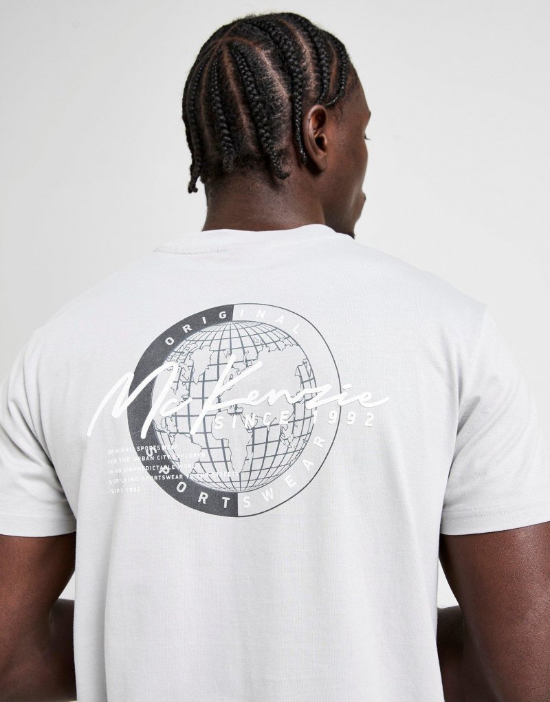 Exklusiv bei JD. Erneuern Sie Ihre Alltagsgarderobe mit diesem Herren-T-Shirt Globe von McKenzie. Das T-Shirt in Grau mit normaler Passform besteht aus weicher, leichter Baumwolle für langanhaltenden Tragekomfort. Der gerippte Rundhalsausschnitt und die kurzen Ärmel sorgen für ein angenehmes Tragegefühl. Abgerundet wird das T-Shirt durch eine auffällige McKenzie-Globus-Grafik auf der Rückseite und ein verkleinertes Logo auf der Brust. Maschinenwaschbar. | Unser Model ist 1,85 m groß, hat einen Brustumfang von 91 cm und trägt Größe M.