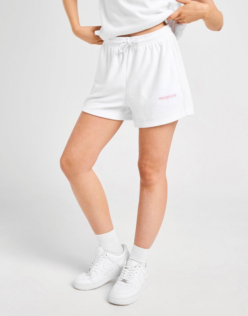 Exklusiv bei JD. Verschönern Sie Ihren Freizeitlook mit den Luna Towel Shorts von McKenzie. Die Shorts in Weiß bestehen aus superweichem, recyceltem Polyester-Frottee für höchsten Tragekomfort. Sie haben einen elastischen Bund mit Kordelzug zur individuellen Anpassung und Seitentaschen für praktische Aufbewahrung. Das gestickte McKenzie-Logo ziert das Bein. Maschinenwaschbar. | Unser Model ist 1,73 m groß und trägt Größe S.