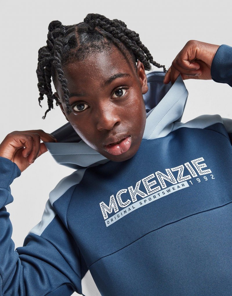 Optimiere deinen Freizeit-Look mit dem Nova Poly Overhead Kinder-Hoodie von McKenzie. Dieser JD-exklusive Hoodie in der Farbe Navy ist mit Farbblock-Einsätzen versehen und besteht aus weichem Polyester-Fleece, um absoluten Komfort zu gewährleisten. Außerdem verfügt er über lange Ärmel und eine Kapuze, während gerippte Bündchen die Passform optimieren. Eine eine Kängurutasche an der Vorderseite ermöglicht eine einfache Aufbewahrung und das typische Logo von McKenzie befindet sich auf der Brust. Waschmaschinengeeignet.