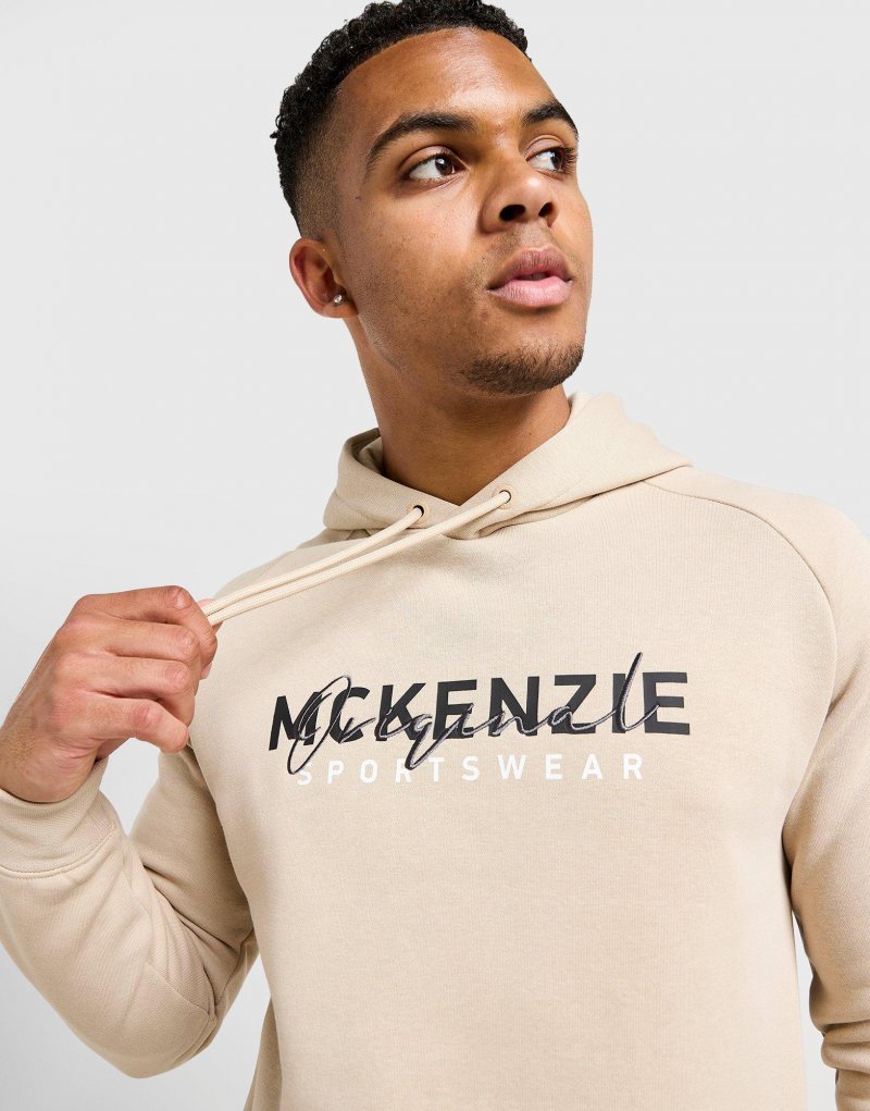 Mit dem Opal Overhead Herren-Hoodie von McKenzie bringst du ein neues Highlight in deine Garderobe. Dieser JD-exklusive Hoodie in der Farbe Oxford Tan besteht aus Baumwolle und recyceltem Polyester mit elastischen, gerippten Bündchen für eine sichere Passform. Außerdem verfügt er über eine Kängurutasche und eine verstellbare Kapuze mit Kordelzug. Das Logo von McKenzie auf der Brust verleiht dem Design einen sauberen Abschluss. Waschmaschinengeeignet. Unser Model ist 1,85 m groß, hat einen Brustumfang von 99 cm und trägt Größe M.