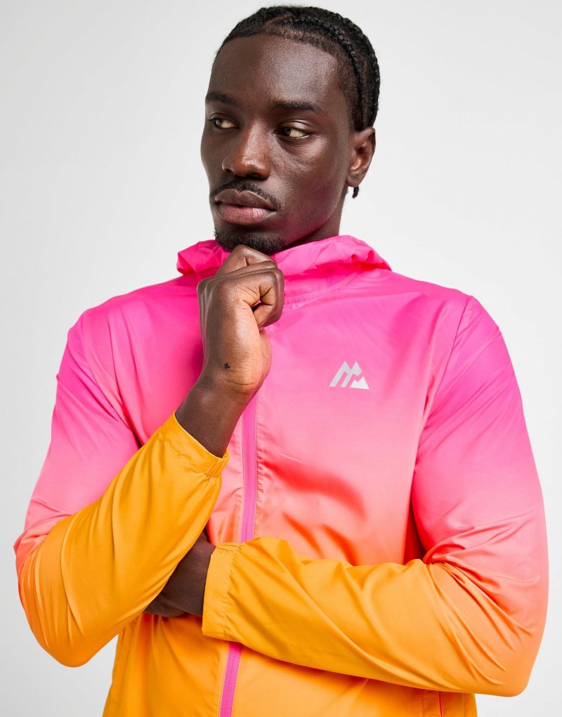 Zeigen Sie Mut mit dieser Alto Fade Jacke für Herren von Montirex. Diese Jacke in Standard-Passform aus glattem, leichtem Polyestergewebe besticht durch ein farbenfrohes Farbverlaufsdesign von Pink nach Orange. Sie verfügt über einen durchgehenden Reißverschluss mit Kapuze für zusätzlichen Schutz und halbelastische Bündchen für ein sicheres Tragegefühl. Reißverschlusstaschen vorne und das klassische Montirex-Logo auf der Brust runden das Design ab. Maschinenwaschbar. | Unser Model ist 1,85 m groß, hat einen Brustumfang von 91 cm und trägt Größe M.