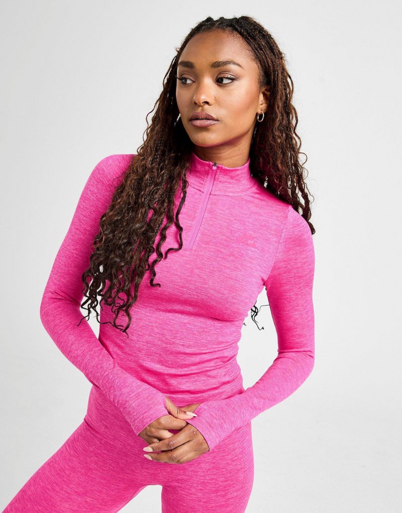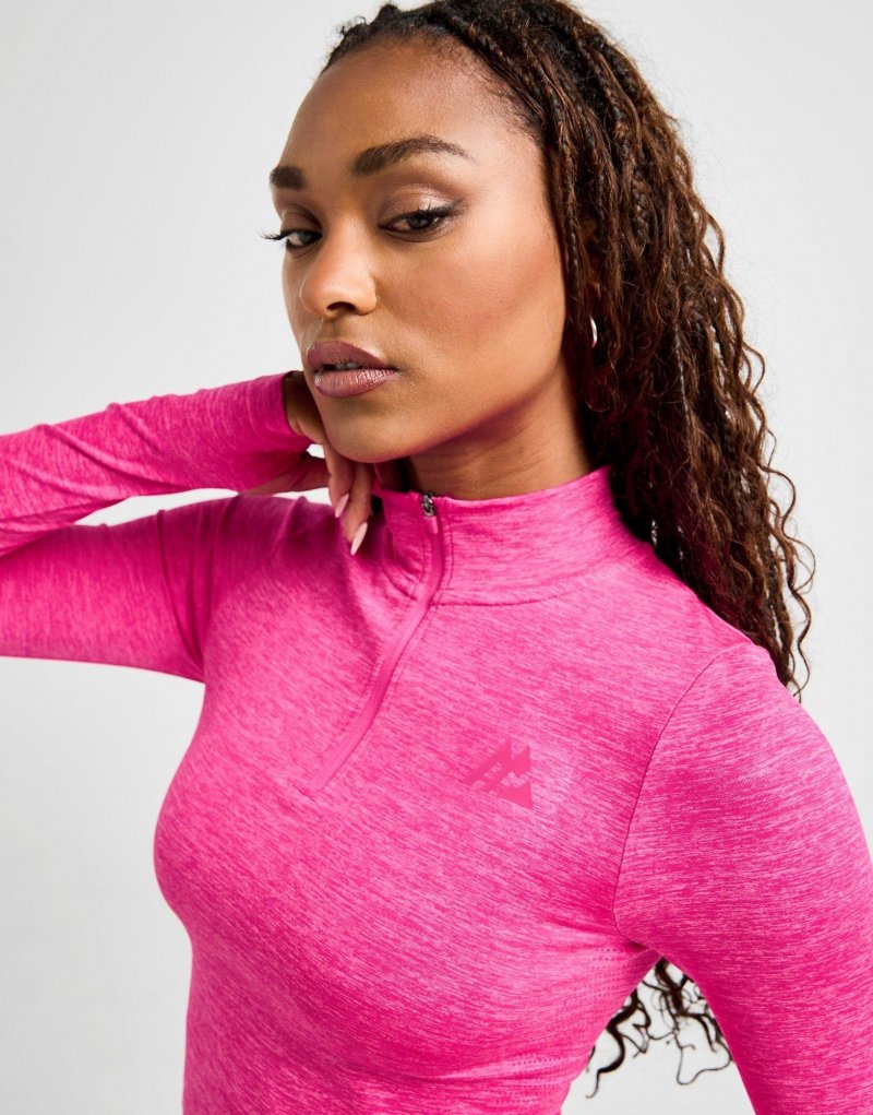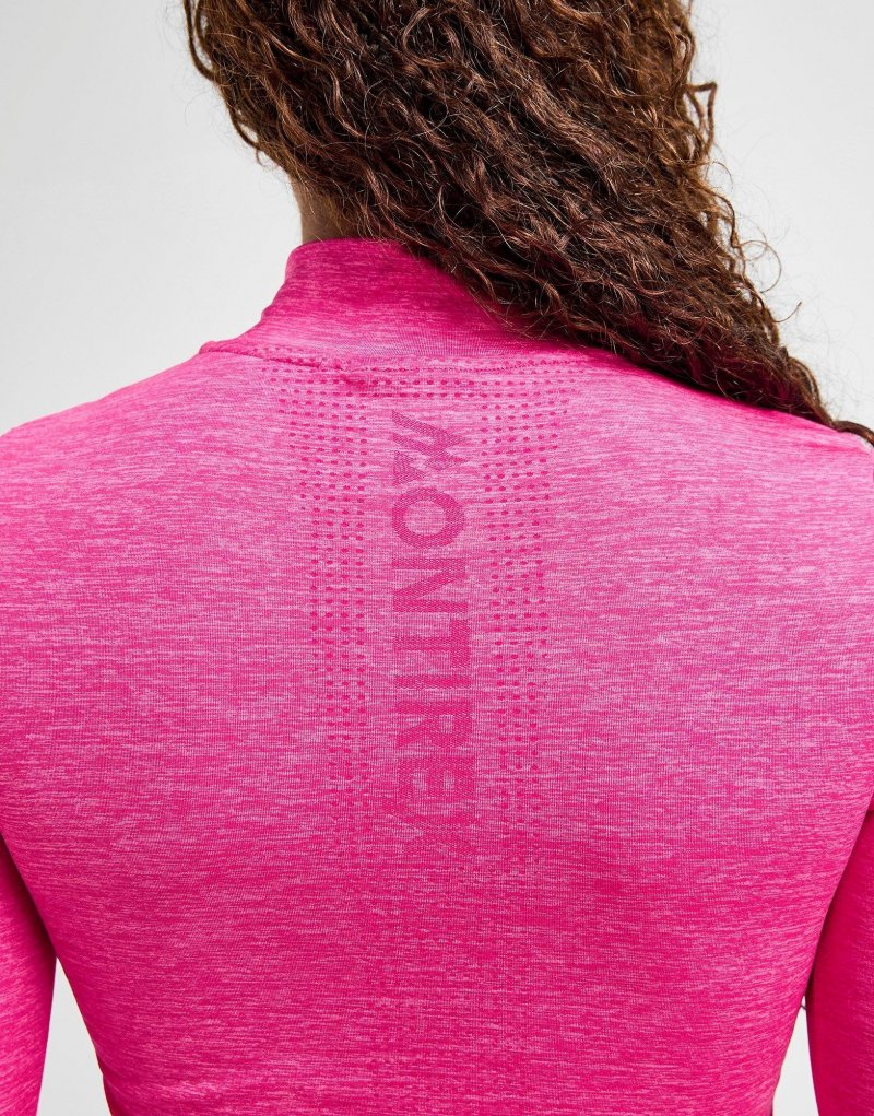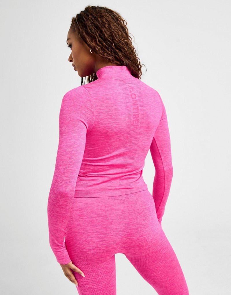 Trainieren Sie mit diesem nahtlosen Damen-Power-Top mit 1/4-Reißverschluss von Montirex. Das Oberteil in Berry Pink ist aus glattem, leichtem Polyester gefertigt und sorgt für kühlen Tragekomfort. Es verfügt über einen Viertelreißverschluss und einen Stehkragen für individuelle Passform. Daumenlöcher an den Ärmelbündchen halten die Ärmel an Ort und Stelle. Das charakteristische Montirex-Logo auf der Brust rundet das Design ab. Maschinenwaschbar. | Unser Model ist 1,70 m groß und trägt Größe S.