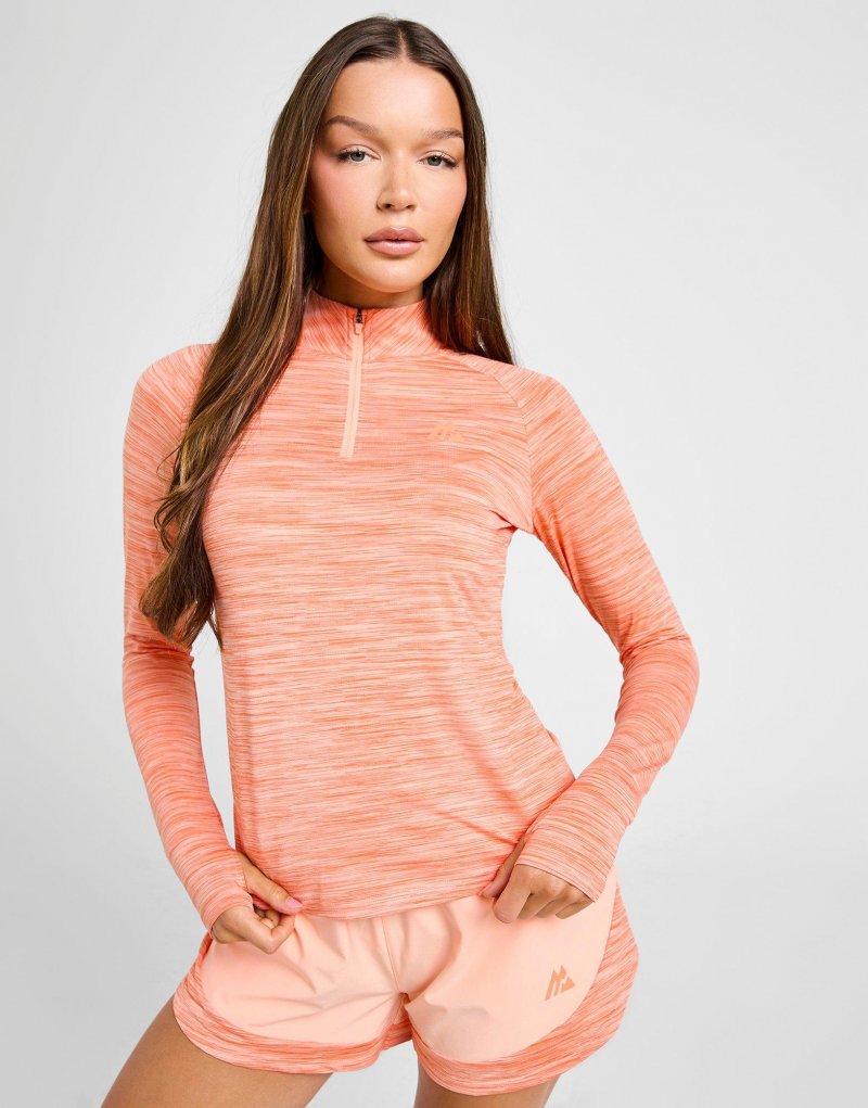Frischen Sie Ihr Lagenlook-Outfit mit diesem Trail 1/4 Zip Top für Damen von Montirex auf. In den Farben Pfirsich und Koralle ist dieses Oberteil mit normaler Passform aus leichtem, dehnbarem Stoff für flexiblen Tragekomfort gefertigt. Es hat lange Ärmel mit 1/4-Reißverschluss für individuelle Bedeckung und Daumenschlaufen für sicheren Sitz. Abgerundet mit dem klassischen Montirex-Branding. Maschinenwaschbar. | Unser Model ist 1,78 m groß und trägt Größe S.