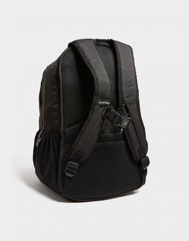 Mit dem Trail Rucksack von Montirex kannst du deine wichtigsten Sachen überallhin mitnehmen. Der schwarze Rucksack ist aus glattem Polyester gefertigt und sorgt für eine sichere und trockene Aufbewahrung. Er verfügt über ein Hauptfach mit Reißverschluss und mehrere Reißverschlusstaschen an den Seiten für zusätzlichen Stauraum. Ein Schlaufengriff erleichtert das Tragen, während verstellbare Brust- und Rückengurte für individuellen Tragekomfort sorgen. Er ist mit einem Hydropack kompatibel und mit dem typischen Montirex-Logo versehen.