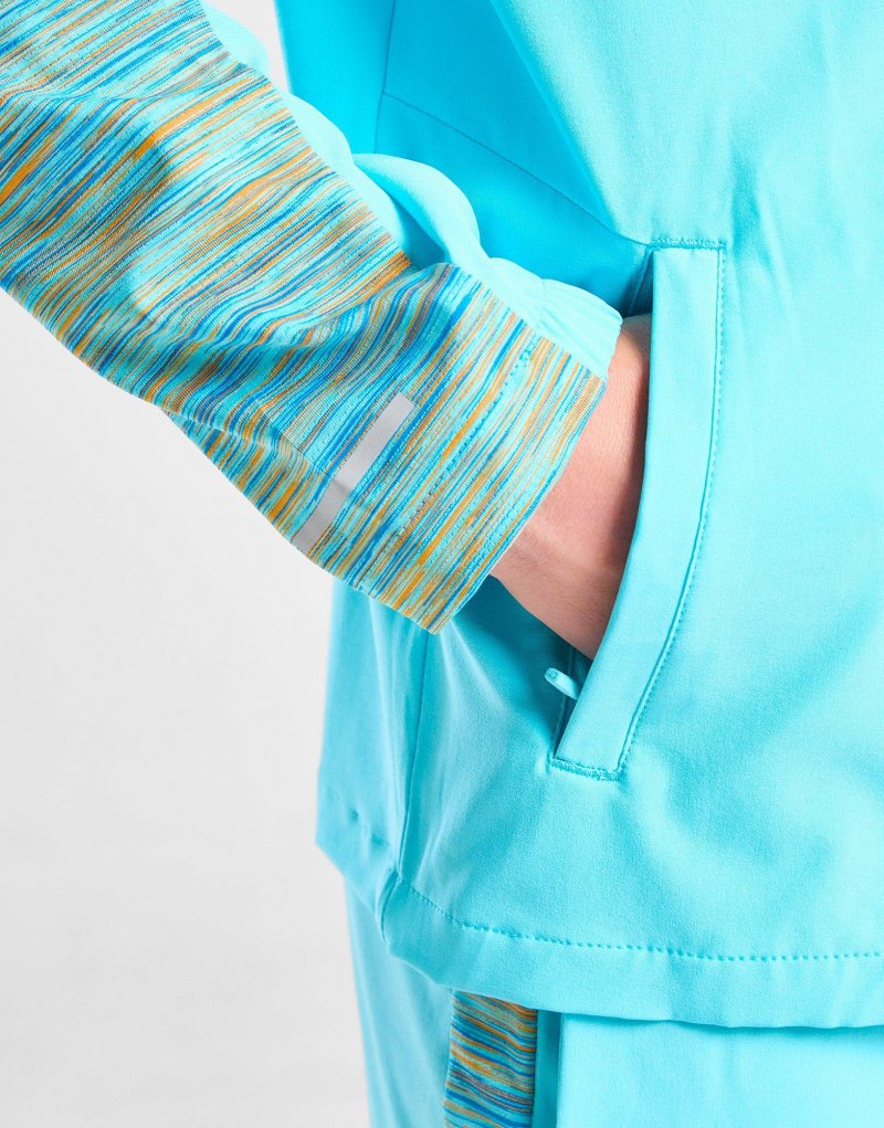 Bringen Sie Energie auf die Straße mit dieser Trail Windbreaker-Jacke für Kinder von Montirex. In Blau mit orangefarbenen Spacedye-Einsätzen besteht diese Jacke aus glattem, leichtem Polyestergewebe. Sie verfügt über einen durchgehenden Reißverschluss mit fester Kapuze für optimalen Schutz und halbelastische Bündchen für sicheren Sitz. Reißverschlusstaschen ermöglichen schnelles Verstauen und sind mit dem reflektierenden Montirex-Logo auf der Brust versehen. Maschinenwaschbar.