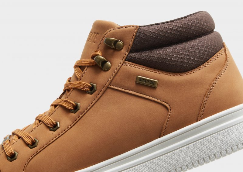 Bring frischen Wind in deine Garderobe mit diesen Nanny State Martin Boots für Herren. Diese Schuhe sind in der Farbe Tan gehalten und besitzen ein strapazierfähiges Obermaterial aus Kunstleder für maximalen Tragekomfort. Zudem sind sie mit einem farblich abgestimmten Schnürverschluss versehen, während der gepolsterte, mittelhohe Kragen für angenehmen Halt sorgt. Eine dicke Schaumstoff-Zwischensohle bietet zusätzliche Dämpfung und die robuste Gummilaufsohle erstklassigen Grip. Das klassische Logo von Nanny State verleiht dem Design einen sauberen Abschluss.