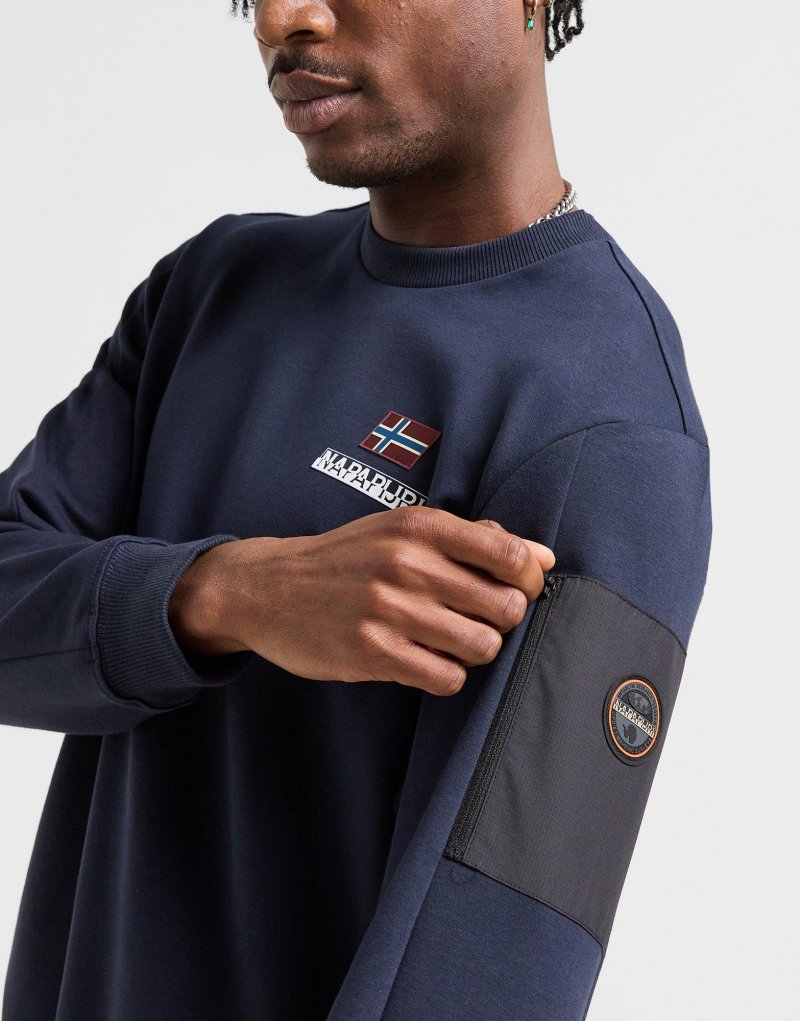 Exklusiv bei JD: Upgrade deinen Freizeit-Look mit dem Napapijri Belk Crew Sweatshirt für Herren. Dieses Sweatshirt in der Farbe Navy ist mit schwarzen Akzenten versehen und besteht aus weichem Fleece-Stoff, um dir absoluten Komfort zu bieten. Es verfügt über einen Rundhalsausschnitt und lange Ärmel für einen zeitlosen Look, während gerippte Bündchen an Kragen, Saum und Ärmeln die Passform optimieren. Eine Reißverschlusstasche am Ärmel bietet Platz für eine sichere Aufbewahrung und das Napapijri-Logo auf der Brust verleiht dem Design einen runden Abschluss. Waschmaschinengeeignet. Unser Model ist 1,83 m groß, hat einen Brustumfang von 91 cm und trägt Größe M.