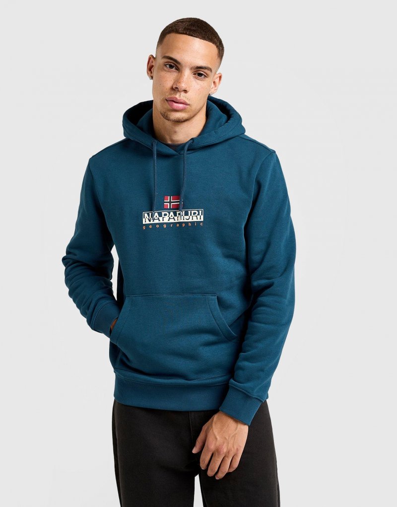 Mit dem Napapijri Bory Logo Hoodie für Herren bringst du frische Energie in deine Garderobe. Dieser JD-exklusive Hoodie in Blau ist aus einem weichen Fleece-Stoff gefertigt und bietet absoluten Komfort im Alltag. Er verfügt über eine Kapuze mit Kordelzug für einen individuellen Look, gerippte Bündchen, um die Passform optimieren, und eine Kängurutasche für die Aufbewahrung. Abgerundet wird das Design durch das Napapijri-Logo auf Brust und Rücken. Waschmaschinengeeignet. Unser Model ist 1,84 m groß, hat einen Brustumfang von 97 cm und trägt Größe M.