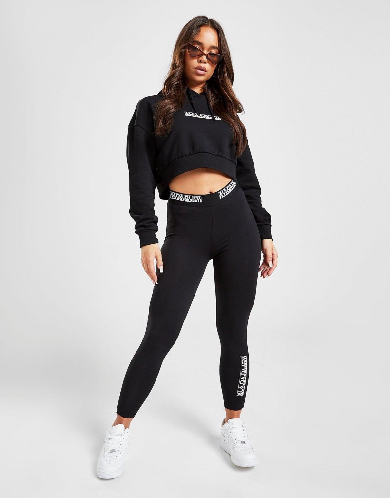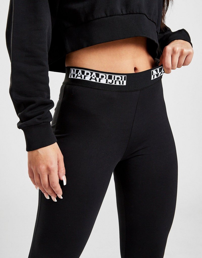 Hol dir diese Damen Leggings von Napapijri für entspannten Komfort und monochromen Stil an. Die hautnah anliegende Leggings in schwarzer Farbe besteht aus weichem und dehnbarem Baumwollstoff. Sie verfügt über lange Beine und einen elastischen, hohen Bund mit wiederholtem Branding. Abgerundet mit einem Box-Logo am Unterschenkel. Waschmaschinenfest. Unser Model ist 172cm groß und trägt eine Größe S.