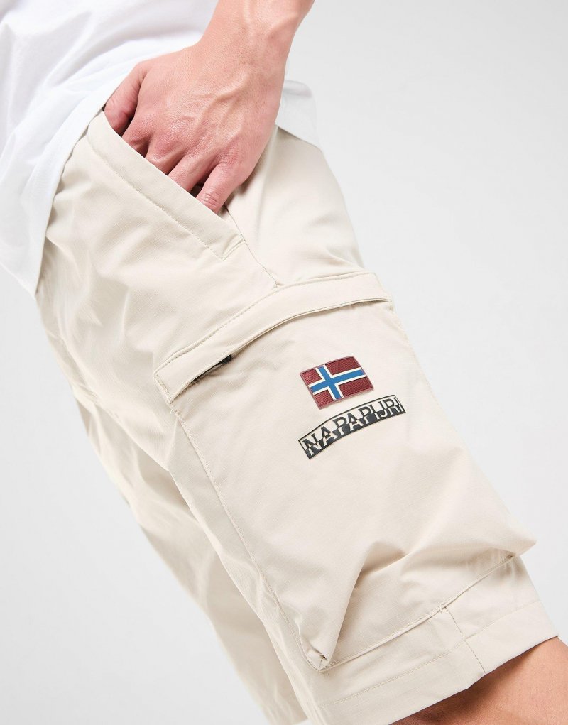 Zeit für einen hochwertigen Street-Look mit den Napapijri Natey Woven Cargo Shorts für Herren. Diese Shorts in der Farbe Stone sind aus glattem, leichtem Webstoff gefertigt und bieten dauerhaften Komfort im Alltag. Sie besitzen einen mittelhohen Bund für ein entspanntes Tragegefühl, während Seiten- und Cargotaschen Platz für Utensilien bereitstellen. Abgerundet wird das Design durch das klassische Logo von Napapijri. Waschmaschinengeeignet. Unser Model ist 1,88 m groß und trägt Größe M.
