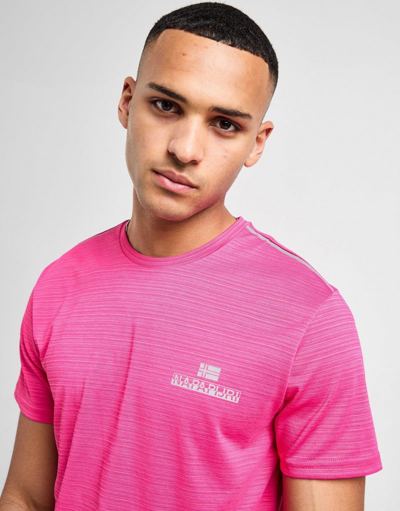 Exklusiv bei JD: Bring sportliche Vibes in deinen Look mit dem Sarlys Herren-T-Shirt von Napapjiri. Dieses Standard-Fit Oberteil in Pink besteht aus glattem, atmungsaktivem Polyestergewebe und sorgt für erstklassigen Komfort. Es besitzt einen klassischen Rundhalsausschnitt und kurze Ärmel mit reflektierenden Bändern an den Schultern. Das klassische Napapijri-Logo auf der Brust verleiht dem Design einen runden Abschluss. Waschmaschinengeeignet. Unser Model ist 1,85 m groß, hat einen Brustumfang von 99 cm und trägt Größe M.