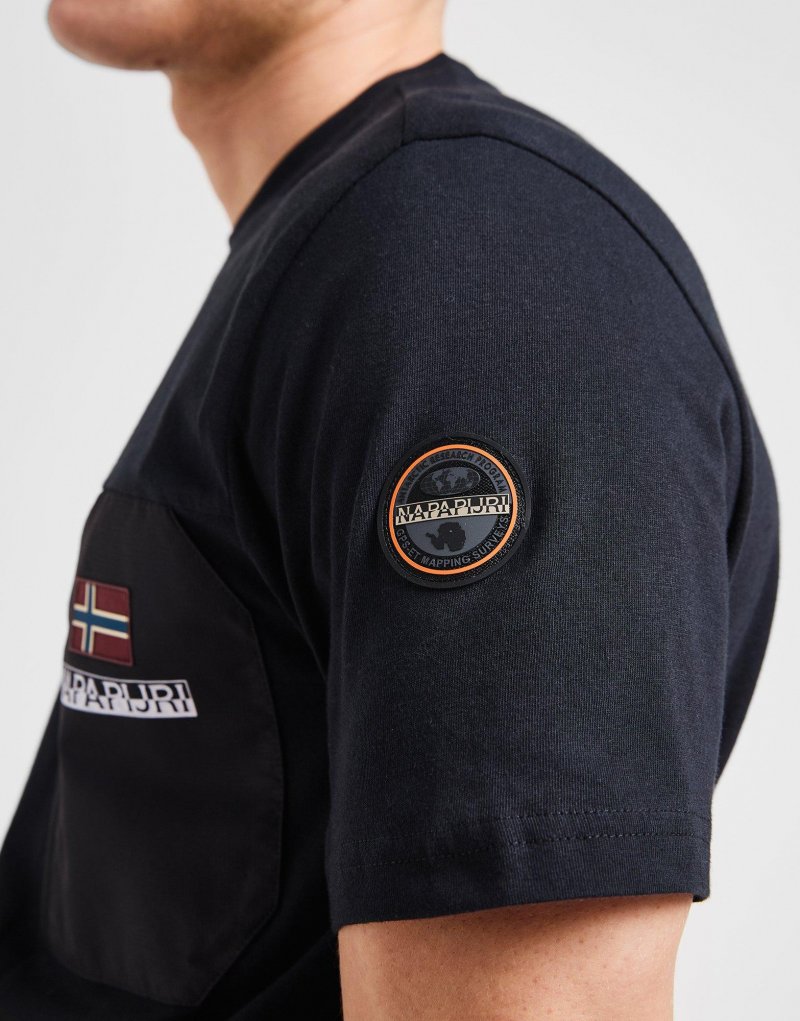 Sichere dir hochwertige Essentials mit dem Napapijri Selk Pocket T-Shirt für Herren. Dieses JD-exklusive T-Shirt in Schwarz besteht aus weichem Baumwollstoff und bietet absoluten Komfort im Alltag. Es verfügt über kurze Ärmel und einen gerippten Rundhalsausschnitt für einen klassischen Look, während die Brusttasche mit Reißverschluss sicheren Stauraum bietet. Abgerundet wird das Design durch das klassische Logo von Napapijri. Waschmaschinengeeignet. Unser Model ist 1,83 m groß, hat einen Brustumfang von 99 cm und trägt Größe M.