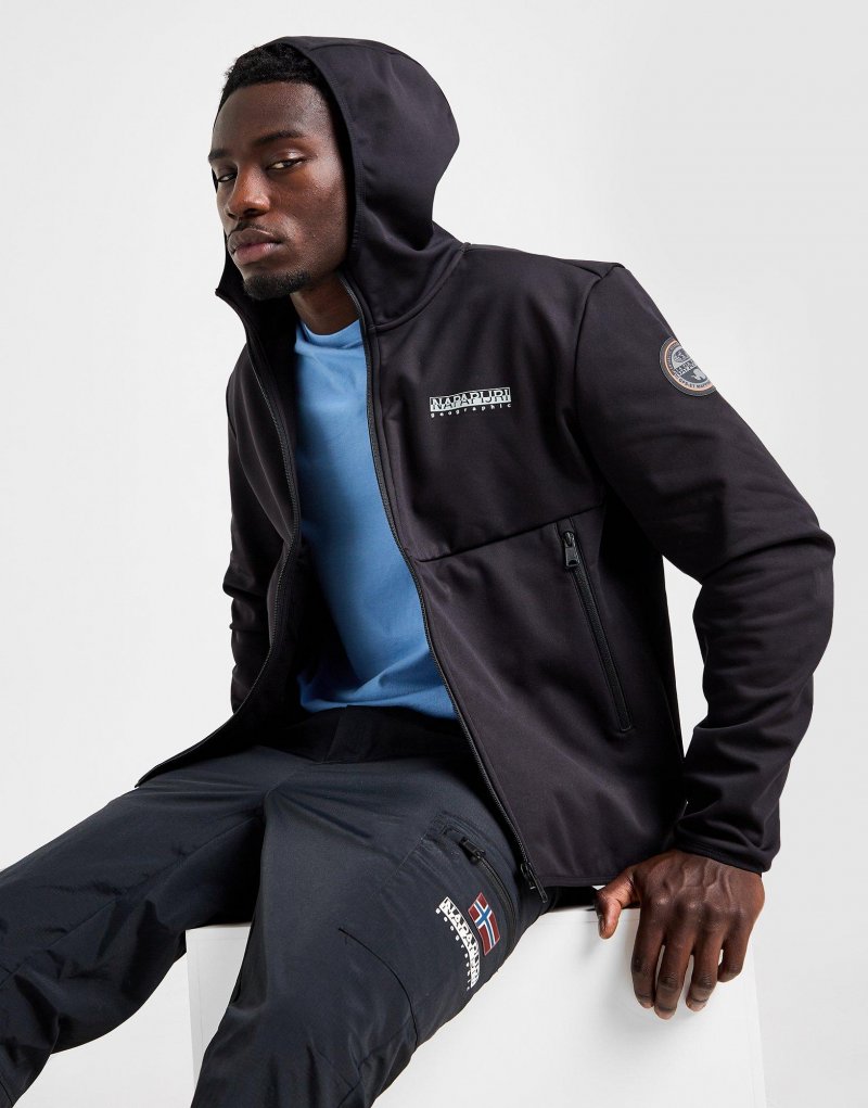 Mit der Softshell Herrenjacke von Napapijri bringst du deinen Outdoor-Style auf ein neues Level. Diese JD-exklusive Jacke in Schwarz ist aus glattem, leichtem Gewebe gefertigt und sorgt für dauerhaften Tragekomfort. Sie verfügt über einen durchgehenden Reißverschluss und eine Kapuze für einen individuellen Look, während elastische Bündchen die Passform optimieren. Die Taschen ermöglichen eine einfache Aufbewahrung und das klassische Napapijri-Logo verleiht dem Deisgn einen runden Abschluss. Waschmaschinengeeignet. Unser Model ist 1,85 m groß, hat einen Brustumfang von 91 cm und trägt Größe M.