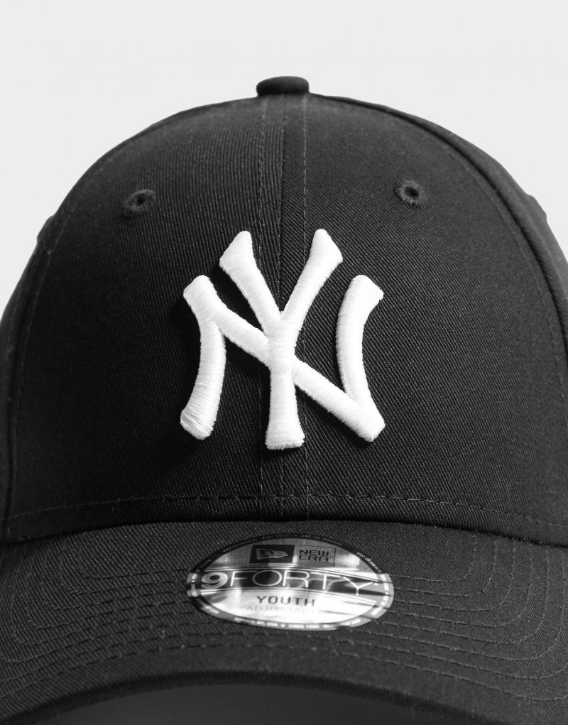 Mit dieser New Era MLB 9FORTY New York Yankees Kappe für Kinder bist du von Kopf bis Fuß fresh gekleidet. Diese schwarze Cap hat einen klassischen gebogenen Schirm und eine elastische Konstruktion. Die konturierte Krone und die strukturierten Paneele sitzen bequem auf dem Kopf, während die verstellbare, offene Rückseite eine individuelle Passform ermöglicht. Das Logo von New Era an der Seite sowie das legendäre Yankees-Wappen auf der Vorderseite runden das Design ab.