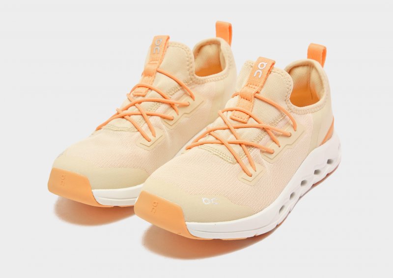 Mit diesen Cloudleap-Sneakern für Kinder von On Running werten Sie Ihre Laufschuhe auf. In den Farben Mandarine und Blond haben diese kleineren Laufschuhe ein weiches, atmungsaktives Obermaterial für kühlen Tragekomfort. Elastische Schnürsenkel fixieren den Schuh und Laschen erleichtern das An- und Ausziehen. Die leichte Helion-Superfoam-Zwischensohle und die CloudTec Phase-Dämpfung sorgen für ein geschmeidiges Laufgefühl, während die Gummilaufsohle für griffigen Halt sorgt. Abgerundet wird das Design durch das charakteristische On Running-Branding.