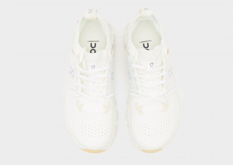 Bring schweizer Qualität in deine Rotation mit den On Running Cloudswift 4 Sneakern für Damen. Diese weißen Schuhe besitzen ein einteiliges, atmungsaktives Mesh-Obermaterial mit einer perforierten Zehenbox, um deine Füße kühl zu halten. Zudem verfügen sie über einen Schnürverschluss und eine moderne Käfigkonstruktion für sicheren Halt im Mittelfußbereich. Unter den Füßen sorgt das Speedboard aus Nylonmischung für ein reaktionsfreudiges Laufgefühl, während die Dual-Density-Helion-Superfoam-Zwischensohle zusätzliche Dämpfung sicherstellt. Eine griffige Gummil-Außensohle bietet sicheren Grip und das typische Logo von On Running setzt dem Design noch die Krone auf.