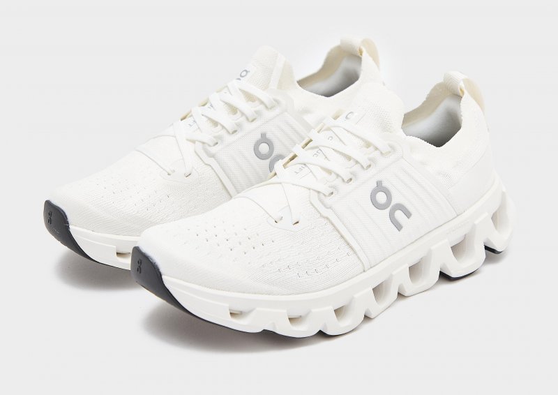 Steigern Sie Ihr Tempo mit den Cloudswift 4 Damen-Sneakern von On Running. In der Farbgebung Weiß haben diese Laufschuhe ein atmungsaktives Obermaterial aus Strick mit einer verbesserten Käfigkonstruktion für sicheren Halt. Sie sitzen auf einer Helion-Superfoam-Zwischensohle mit doppelter Dichte für weichen, reaktionsfreudigen Komfort und einem Speedboard aus Nylonmischung für kraftvollen Abstoß. Das robuste Gummiprofil sorgt für sicheren Halt und ist durchgehend mit dem On Running-Branding versehen.