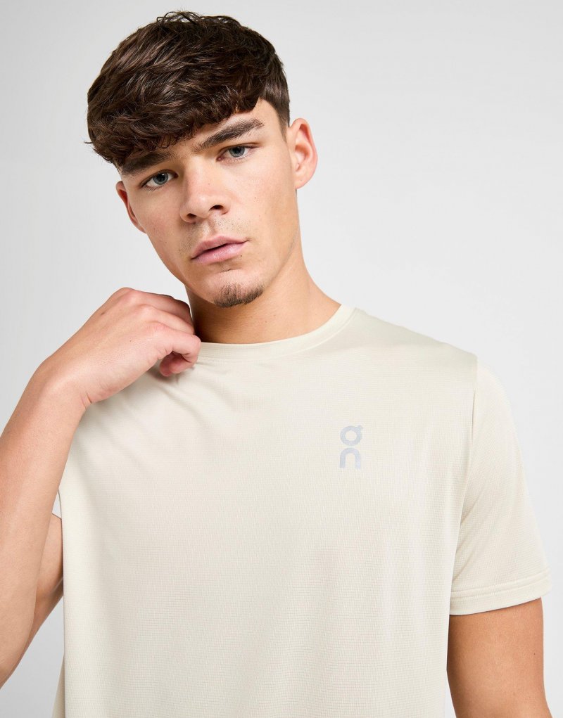 Steigern Sie Ihr Tempo mit diesem Herren Core T-Shirt von On Running. In der Farbe Sand ist das T-Shirt aus glattem, dehnbarem Recycling-Polyester gefertigt und sorgt für langanhaltenden Tragekomfort. Der gerippte Rundhalsausschnitt und die kurzen Ärmel sorgen für bequemes Tragen und sind mit dem charakteristischen On Running-Logo auf der Brust versehen. Maschinenwaschbar. | Unser Model ist 1,88 m groß, hat einen Brustumfang von 94 cm und trägt Größe M.
