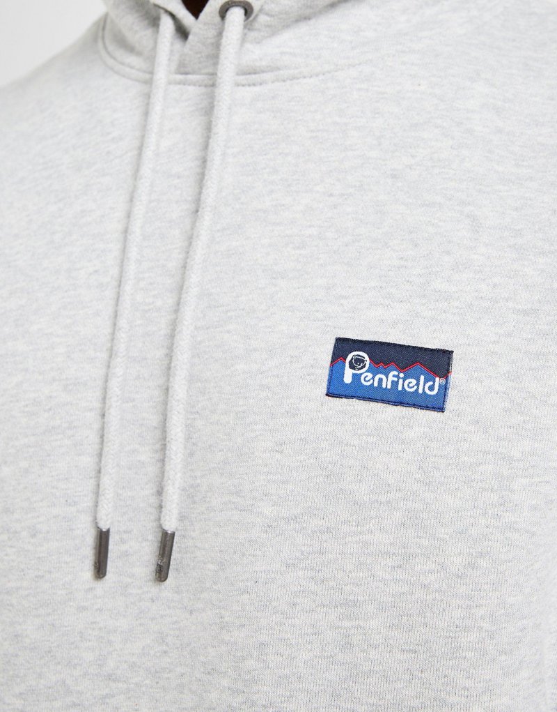 Peppen Sie Ihren lässigen Look mit diesem Original Badge Hoodie für Herren von Penfield auf. Dieser Pullover in der Farbe Graumeliert mit normaler Passform besteht aus weicher, dicker Loopback-Baumwolle für optimalen Tragekomfort. Ein verstellbarer Kordelzug in der Kapuze sorgt für zusätzlichen Schutz, und elastische Rippbündchen an Bündchen und Saum sorgen für einen sicheren Sitz. Die geräumige Kängurutasche vorne bietet Platz für Ihre Sachen. Das aufgestickte Penfield-Logo auf der Brust rundet das Design ab. Maschinenwaschbar. | Unser Model ist 1,85 m groß, hat einen Brustumfang von 91 cm und trägt Größe M.