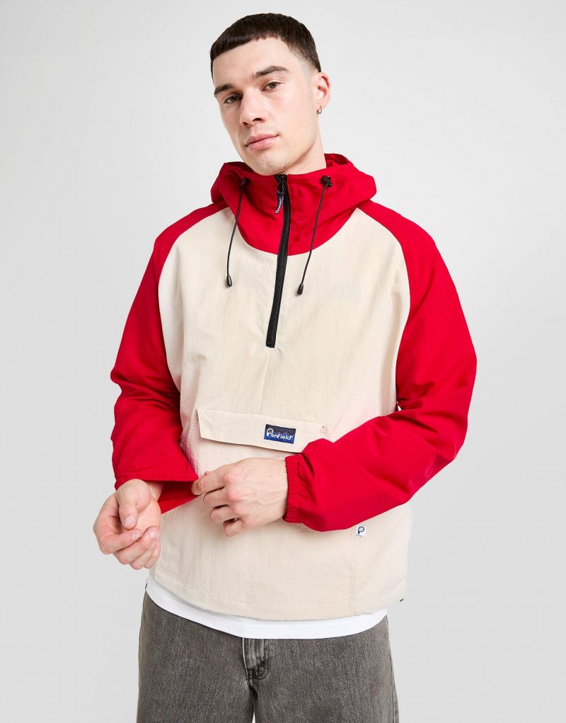 Mit der Pac Herrenjacke von Penfield bringst du deinen Outdoor-Style auf ein neues Level. Diese Regular-Fit Jacke ist in einem Farbblock-Design aus Rot und Ecru gehalten. Sie besteht aus strapazierfähigem, wasserabweisendem Nylongewebe und bietet maximalen Schutz vor dem Wetter. Sie besitzt ein klassisches Pullover-Design und verfügt über einen Viertelreißverschluss, eine verstellbare Kapuze und elastische Bündchen, um die Passform zu optimieren. Eine Kängurutasche auf der Vorderseite ermöglicht eine einfaceh Aufbewahrung, während die verstaubare Konstruktion den Transport der Jacke erleichtert. Abgerundet wird das Design durch das Penfield-Logo auf der Brust. Waschmaschinengeeignet. Unser Model ist 1,85 m groß, hat einen Brustumfang von 91 cm und trägt Größe M.