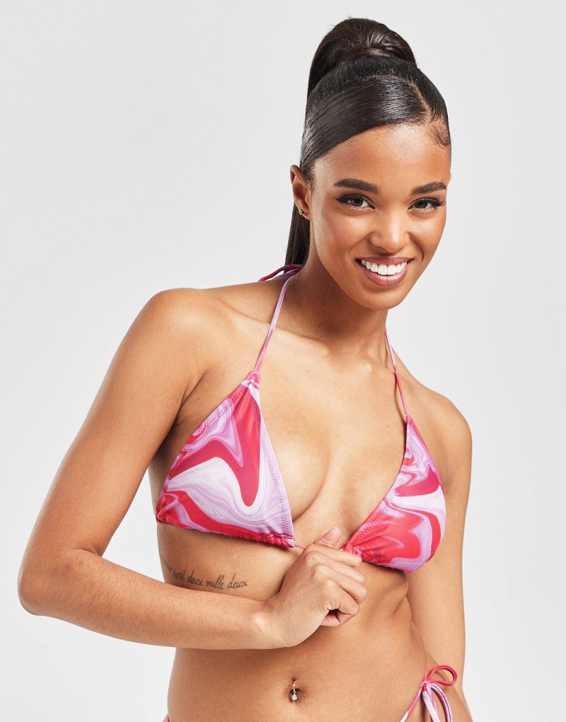 Bring deinen Pool-Look auf ein neues Level mit dem Fiesta Swirl Bikinioberteil von Pink Soda Sport hervor. Dieses Top ist in Pink gehalten und besteht aus einem schnell trocknenden, dehnbaren Recycling-Polyester, um dir absoluten Komfort zu bieten. Zudem ist es mit einem Bindeverschluss um den Hals und am Rücken versehen, um einen sicheren Halt zu gewährleisten. Das klassische Logo verleiht dem Design einen runden Abschluss. Waschmaschinengeeignet. Unser Model ist 1,73 m groß und trägt Größe 8.