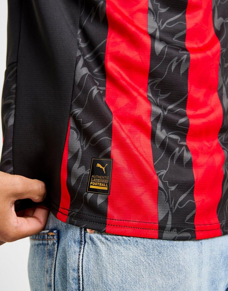Ob San Siro oder die Straßen von Mailand - mit dem PUMA AC Mailand 2025/26 Heim Shirt für Herren repräsensierst du überall deine Lieblingsmannschaft. Dieses Oberteil ist mit den schwarz-roten Streifen versehen und besteht aus glattem, leichtem Polyester für absoluten Komfort. Es verfügt über einen gerippten Rundhalsausschnitt und kurze Ärmel für einen zeitlosen Look, während die schweißableitende dryCELL-Technologie ein kühles Tragegefühl sicherstellt. Abgerundet wird das Ganze durch das PUMA-Logo und das Wappen des AC Mailand auf der Brust. Waschmaschinengeeignet.