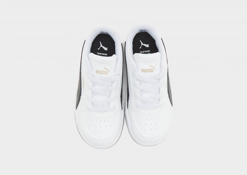 Mit den PUMA Caven II Turnschuhen für Babys kannst du deine Kids mit stylischen Sneakern ausstatten. Diese exklusiv bei JD erhältlichen Schuhe haben ein Obermaterial aus Synthetikleder für dauerhaften Tragekomfort. Sie verfügen über atmungsaktive Perforationen im Zehenbereich, elastische Schnürsenkel für ein einfaches An- und Ausziehen und eine weiche Polsterung um den Kragen. Mit einer leichtne Dämpfung und der robuste Gummilaufsohle, die für griffige Traktion sorgt, sind die Füße der Kleinen bestens aufgehoben. Abgerundet wird das Design des Schuhs durch den kultigen Formstrip an den Seiten und das klassische PUMA-Logo.