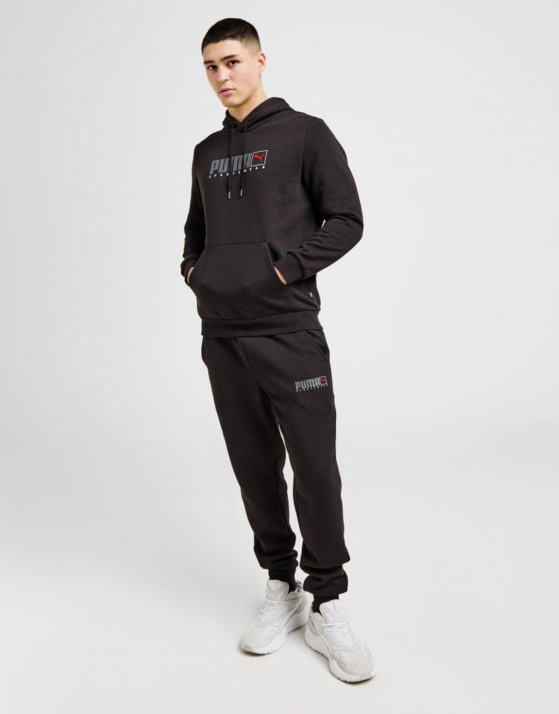 Bring ein neues Highlight in deinen Freizeit-Look mit der Core Sportswear Herren-Jogginghose von PUMA. DieseRegular-Fit Hose ist in den Farben Schwarz und Rot gehalten und besteht aus weichem Baumwoll-Fleece, um dir maximalen Komfort zu bieten. Außerdem verfügt sie über einen elastischen Bund mit Kordelzug sowie Bündchen am Beinende, um die Passform zu sichern. Die Seitentaschen bieten Platz für deine Hände oder Utensilien und abgerundet wird das Design durch das PUMA Sportswear-Logo auf dem Oberschenkel. Waschmaschinengeeignet. Unser Model ist 1,82 m groß und trägt Größe M.