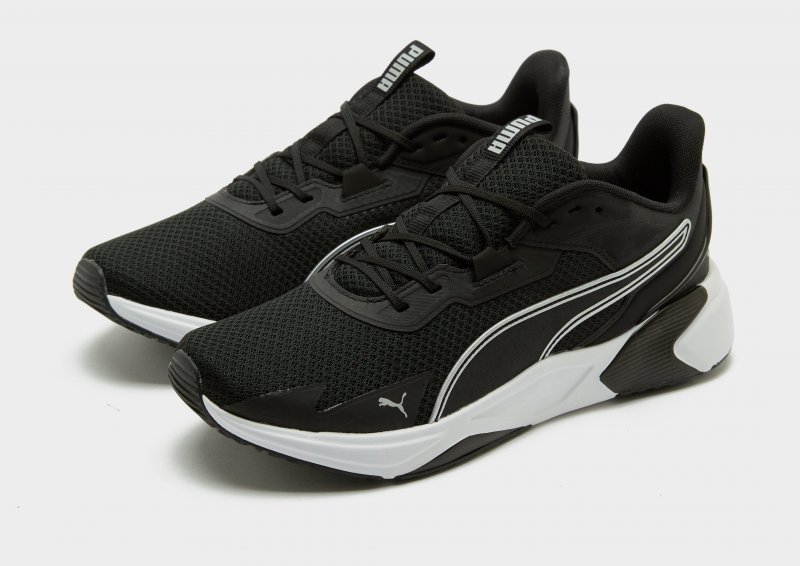 Mit diesen Disperse-Laufschuhen für Herren von PUMA bringst du maximalen Komfort in dein Training. In der Farbkombination Schwarz und Weiß haben diese JD-Exklusivmodelle ein atmungsaktives Obermaterial aus Strickgewebe und synthetische Overlays zur Unterstützung. Sie verfügen über einen klassischen Schnürverschluss und eine Zungenlasche zum einfachen An- und Ausziehen. Unter den Füßen fühlt sich die klobige PUMALite EVA-Schaum-Mittelsohle superweich, leicht und gepolstert an, während die Gummilaufsohle für Halt sorgt. Abgerundet durch den Formstrip an den Seitenwänden.