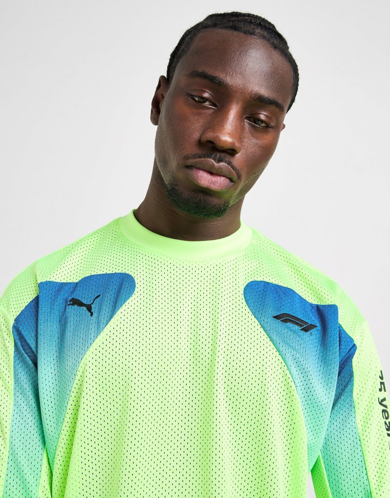 Machen Sie sich bereit für den Renntag mit diesem langärmeligen F1-T-Shirt für Herren von PUMA. Dieses T-Shirt mit entspannter Passform in der Farbe Speed Green besteht aus glattem, atmungsaktivem Netzgewebe für dauerhaften Tragekomfort. Es verfügt über einen klassischen Rundhalsausschnitt und lange Ärmel mit gerippten Bündchen für einen sicheren Sitz und ist durchgehend mit auffälligen F1-Grafiken versehen, um 75 Jahre Tradition zu feiern. Mit PUMA-Branding auf der Brust. Maschinenwaschbar. | Unser Model ist 1,85 m groß, hat einen Brustumfang von 91 cm und trägt Größe M.