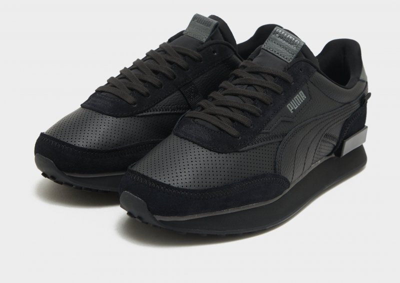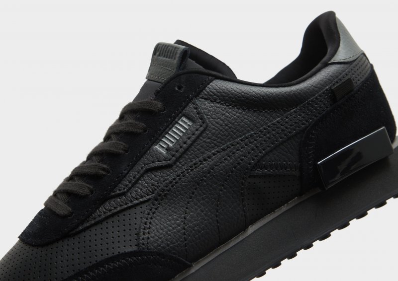 Verbessere deine Kick-Sammlung mit Retro-inspiriertem Stil, indem du diese Future Rider Perforated Sneakern für Herren von PUMA nimmst. Diese exklusiven JD-Sneaker in einer schwarzen Farbgebung bieten ein Obermaterial aus Leder und Textil für weichen Komfort und Halt. Sie sitzen auf einer schwammigen IMEVA-Zwischensohle für höchste Dämpfung, während das griffige Gummiprofil unter den Füßen die nötige Traktion für deinen Schritt bietet. Mit atmungsaktiven Perforationen, um deine Füße frisch zu halten, verfügen diese Krepps über einen tonalen Schnürverschluss und einen gepolsterten Knöchelkragen für eine hautnah anliegende Passform. Abgerundet mit PUMA-Branding an Zunge, Ferse und Seitenwänden.
