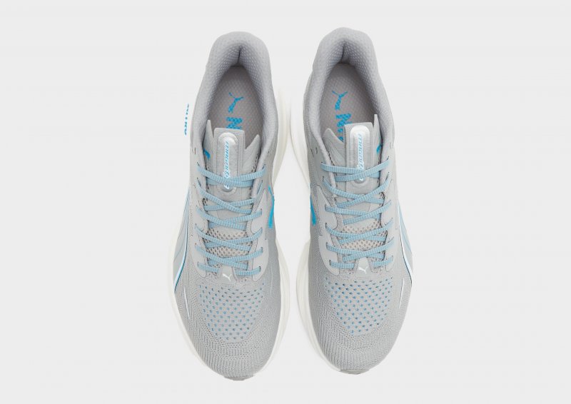 Mit den PUMA Magnify Nitro 3 Sneakern für Herren läufst du auf Hochtouren. Diese Laufschuhe in den Farben Grau und Super Blue besitzen ein hochwertiges, technisches Mesh-Obermaterial mit PWRTAPE, um dir absoluetn Komfort zu bieten. Außerdem verfügen sie über einen Schnürverschluss für sicheren Halt, während eine Zuglasche an der Zunge das An- und Ausziehen erleichtert. Unter den Füßen sorgt die NITROFOAM-Dämpfung für ein reaktionsfreudiges Laufgefühl und die PUMAGRIP-Außensohle bietet maximale Traktion. Abgerundet wird das Design durch das klassische Logo von PUMA.