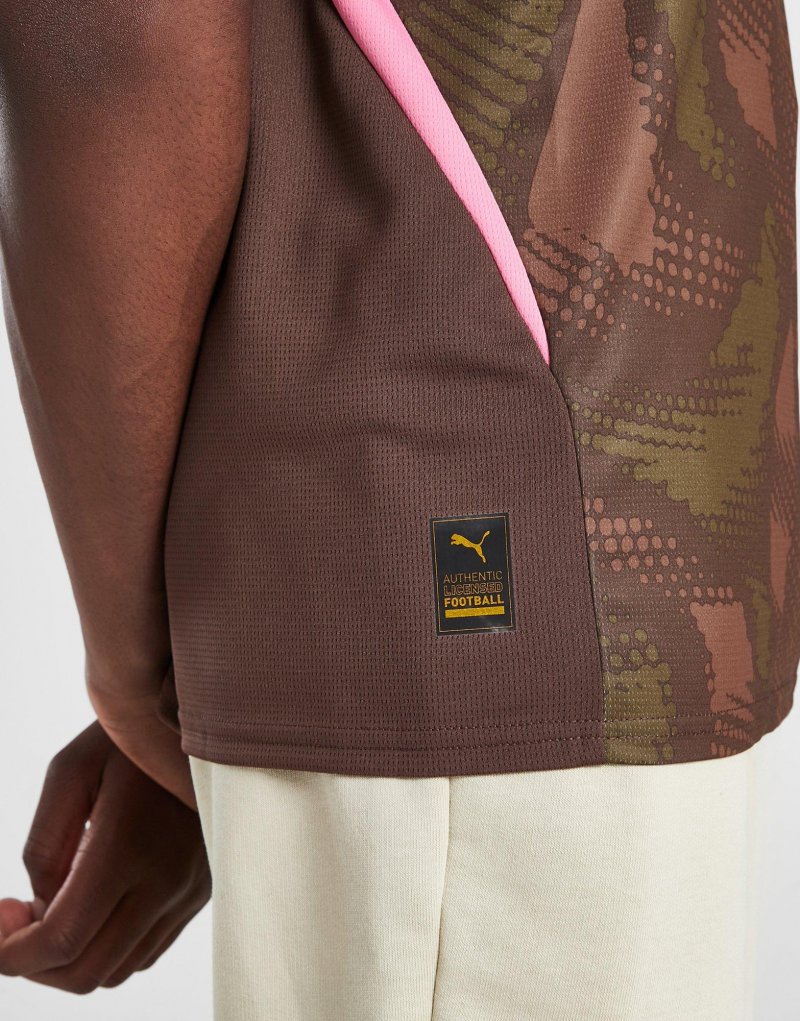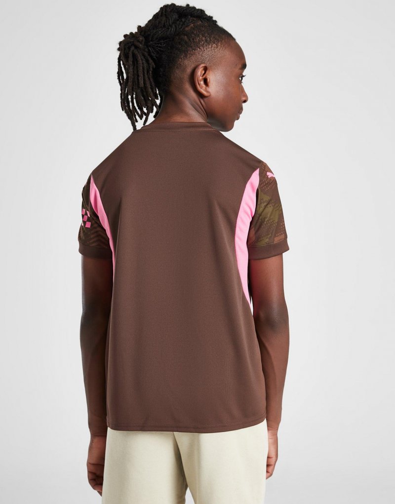Mit dem PUMA Manchester City FC 2024/25 Torwart-Shirt für Kinder bleibt der Kasten sauber. Das Shirt besteht aus leichtem Recycling-Polyester und ist mit der schweißableitenden dryCELL-Technologie ausgestattet, die für ein angenehm kühles Tragegefühl sorgt. Es ist in der Farbe Braun gehalten und mit einem All-Over-Print versehen. Zudem verfügt es über einen gerippten Kragen und kurze Ärmel für einen klassischen Look. Das PUMA-Logo und ds MCFC-Wappen auf der Brust runden das Ganze ab. Waschmaschinengeeignet.