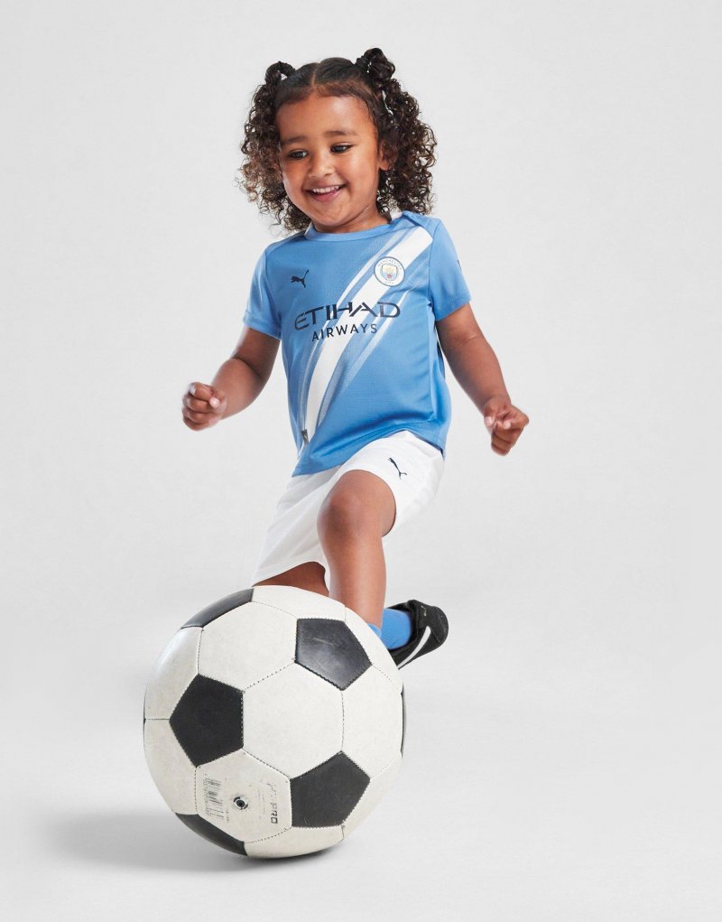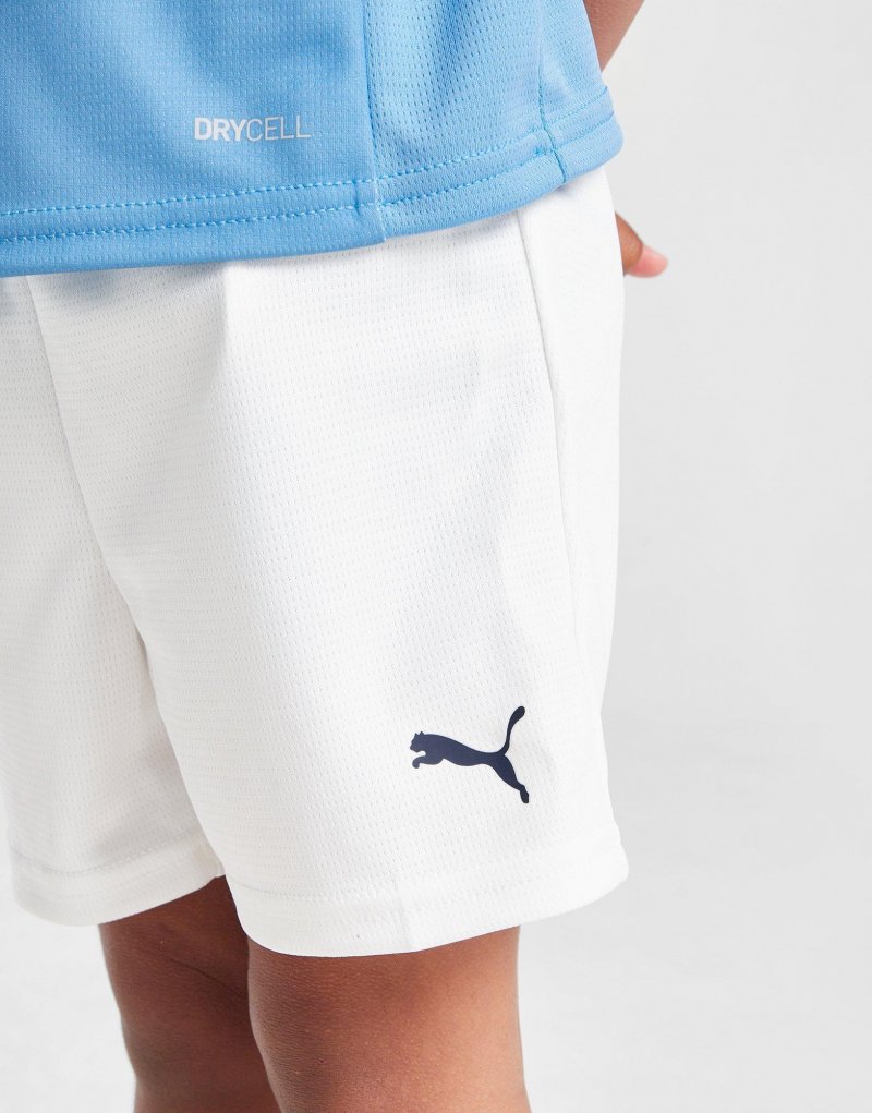Verleihe deinen Kids den kompletten Fan-Look mit dem PUMA Manchester City FC 2025/26 Heim Trikotsatz für Babys. Dieses verkleinerte Trikot in der Farbe Team Light Blue und Weiß besteht aus leichtem, atmungsaktivem Polyester und bietet absoluten Tragekomfort. Das Top verfügt über einen klassischen Rundhalsausschnitt und kurze Ärmel für einen zeitlosen Look, während die schweißableitende dryCELL-Technologie ein trockenes Feeling sicherstellt. Die passenden Shorts in Weiß besitzen einen verstellbaren, elastischen Bund mit Kordelzug für einen sicheren Halt. Abgerundet wird das Design durch eine weiße Schärpe, das PUMA-Logo und das Wappen des Manchester City FC. Waschmaschinengeeignet.