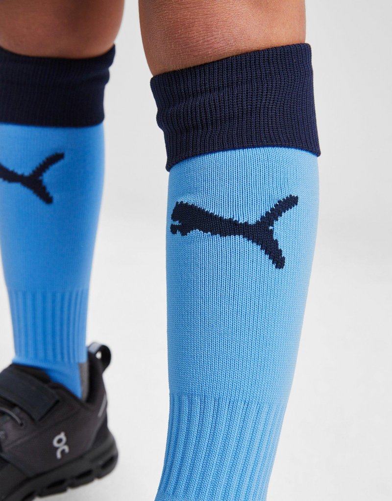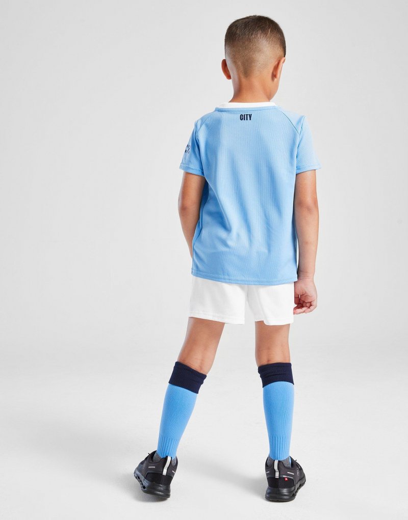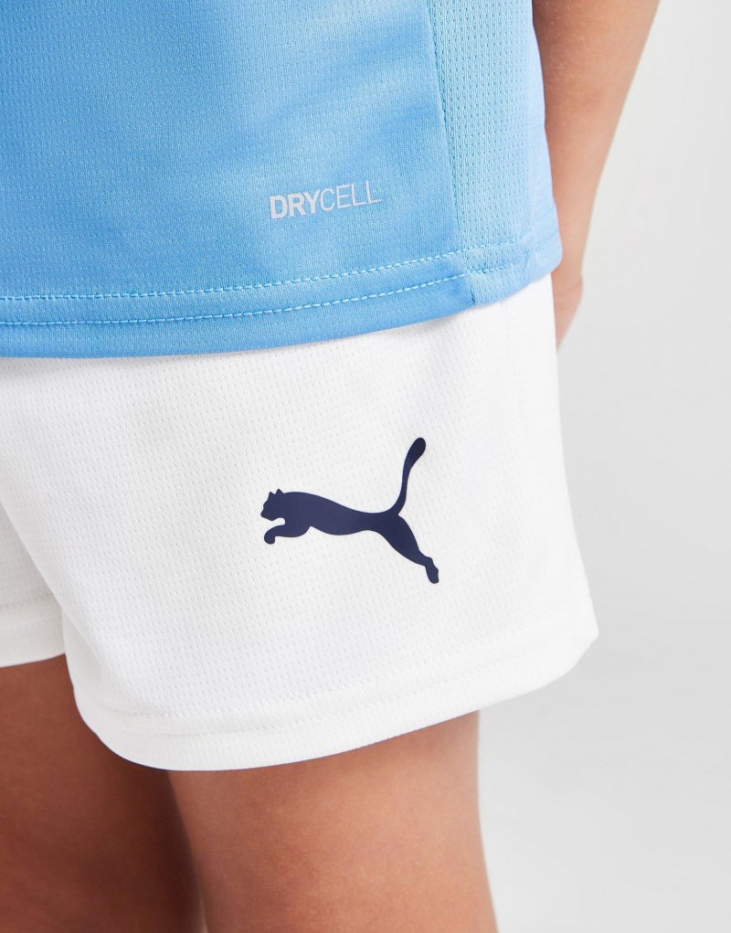 Mit dem PUMA Manchester City FC 2025/26 Heim Trikotsatz für Kleinkinder verleihst du deinen Kids den kompletten Fan-Look. Dieses Trikot ist in den Farben Team Light Blue und Weiß gehalten und besteht aus glattem, leichtem Polyestergewebe, während die schweißableitende dryCELL-Technologie ein kühles Tragegefühl sicherstellt. Das Oberteil besitzt einen Rundhalsausschnitt, kurze Ärmel und eine weiße Schärpe, während die passenden Shorts über einen elastischen Bund mit Kordelzug verfügen, um die Passform zu optimieren.Die Stutzen vervollständigen den Look. Abgerundet wird das Ganze durch das PUMA-Logo und das Wappen von Manchester City. Waschmaschinengeeignet.