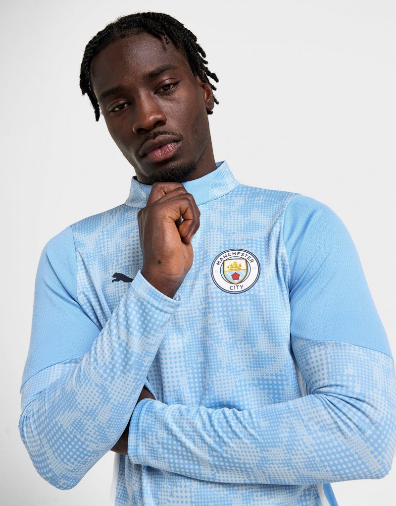 Bring deinen Fan-Look auf ein neues Level mit dem PUMA Manchester City FC 1/4 Zip Trainingsoberteil für Herren. Dieses Slim-Fit Oberteil in Blau ist aus leichtem, atmungsaktivem Polyester gefertigt und bietet absoluten Tragekomfort. Es verfügt über einen Viertelreißverschluss für einen individuellen Look und Daumenlöcher für einen sicheren Halt. Die dryCELL-Technologie leitet den Schweiß von der Haut ab, während Mesh-Paneele die Belüftung optimieren. Abgerundet wird das Design durch das PUMA-Logo und das City-Wappen auf der Brust. Waschmaschinengeeignet.