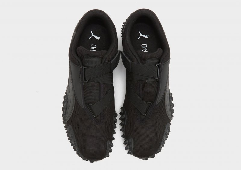 Running Spikes aus den 60ern treffen auf Surfschuhe der 80er mit den PUMA Mostro Sneakern für Herren. Diese Schuhe sind in der Farbe PUMA Black gehalten und besitzen ein Obermaterial aus Textil und Synthetik mit auffälligen Gummispikes an der Außensohle und an den Seitenwänden. Die elastischen Klettverschlüsse sichern die Passform und abgerundet wird das Design durch einen farblich abgestimmten Formstrip und PUMA-Logos.