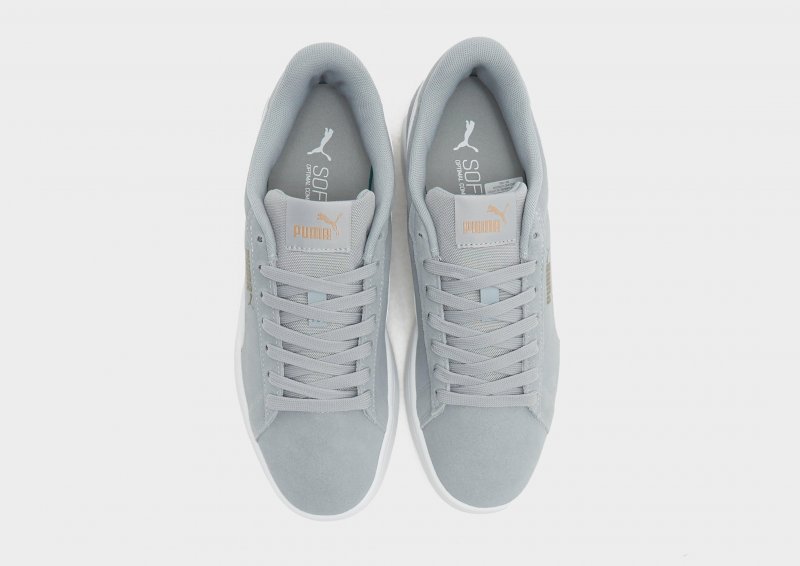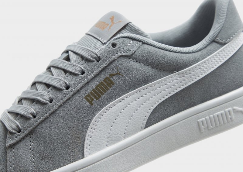 Mit den PUMA Smash Suede Sneakern für Kinder bringst du neue Energie in deine Rotation. Diese grauen Kicks besitzen ein weiches Wildleder-Obermaterial und sorgen für Premium-Vibes. Sie verfügen über einen farblich abgestimmten Schnürverschluss und einen gepolsterten Knöchelkragen für einen sicheren Halt, während eine schnittige Zwischensohle für leichte Dämpfung unter den Füßen sorgt. Die robuste Gummilaufsohle gewährleistet erstklassigen Grip und der legendäre Formstrip von PUMA an den Seitenwänden sowie das klassische Logo sorgen für einen sauberen Abschluss.