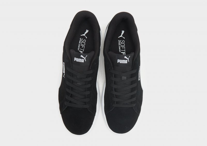 Mit diesen Smash Suede-Sneakern für Junioren von PUMA können Sie Ihr Crep-Game auf ein neues Level bringen. Diese Sneaker in Schwarz sind aus glattem Wildleder gefertigt und bieten ein erstklassiges Tragegefühl und lange Haltbarkeit. Sie verfügen über einen Schnürverschluss, der Sie sicher festhält, und einen gepolsterten Schaft für zusätzlichen Halt. Unter dem Fuß sitzen sie auf einer Zwischensohle aus weichem Schaumstoff für ein sanftes Laufgefühl, während die griffige Gummilaufsohle für Traktion sorgt. Abgerundet mit dem ikonischen Formstrip und dem klassischen PUMA-Branding.