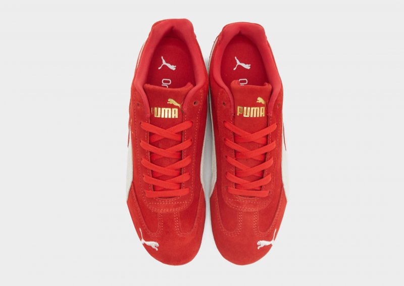 Setz ein Statement auf der Straße mit diesen Speedcat OG Damen-Sneakern von PUMA. Diese vom Rennsport inspirierten Laufschuhe sind in einemkräftigem Rot gehalten und besitzen ein Obermaterial aus hochwertigem Wildleder für maximalen Tragekomfort. Mit einer superschlanken, flachen Silhouette verfügen sie über einen farblich abgestimmten Schnürverschluss und eine schnittige Zwischensohle, um Halt und Dämpfung zu gewährleisten. Außerdem sind sie mit einem robusten Gummiprofil ausgestattet, um für Traktion zu sorgen, während das typische PUMA-Logo das Design abrundet.