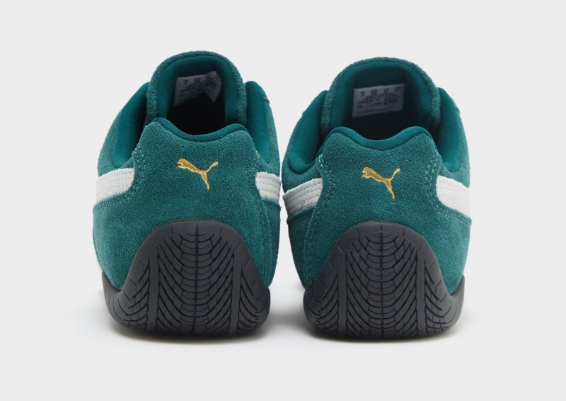 Mit den Speedcat OG Damen-Sneakern von PUMA bist du auch abseits der Rennstrecke in sportlichem Style unterwegs. Diese Schuhe sind in Dunkelgrün gehalten und mit weißen Akzenten versehen. Sie besitzen ein Obermaterial aus Leder, um dir absoluten Tragekomfort zu bieten. Zudem verfügen sie über einen Schnürverschluss für einen sicheren Halt, eine IMEVA-Zwischensohle für e Dämpfung und eine Gummiaußensohle, die für maximale Traktion auf der Straße sorgt. Die schlanken und markanten Linien sorgen für einen auffälligen Look, während ein goldener Schriftzug, das klassische PUMA-Logo auf der Zehenpartie und der typische Formstrip an den Seitenwänden für einen sauberen Abschluss sorgen.